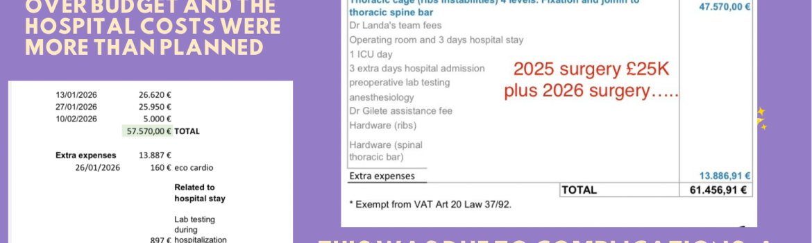 46%-£39,321 raised of £94K goal – (£25K for 2025 Surgery debt, £69K for rib fusion surgery, in 2026 due to the added complications and hospital stay- see breakdown on GoFundMe) HOME AT LAST! We arrived home the early hours of Tuesday morning after a stressful trip home which began with […]